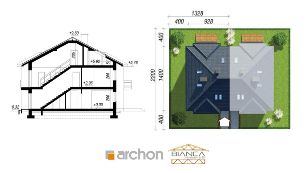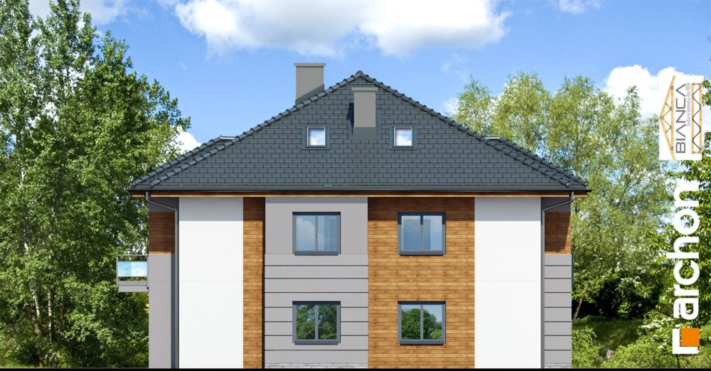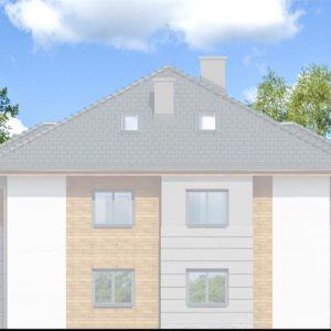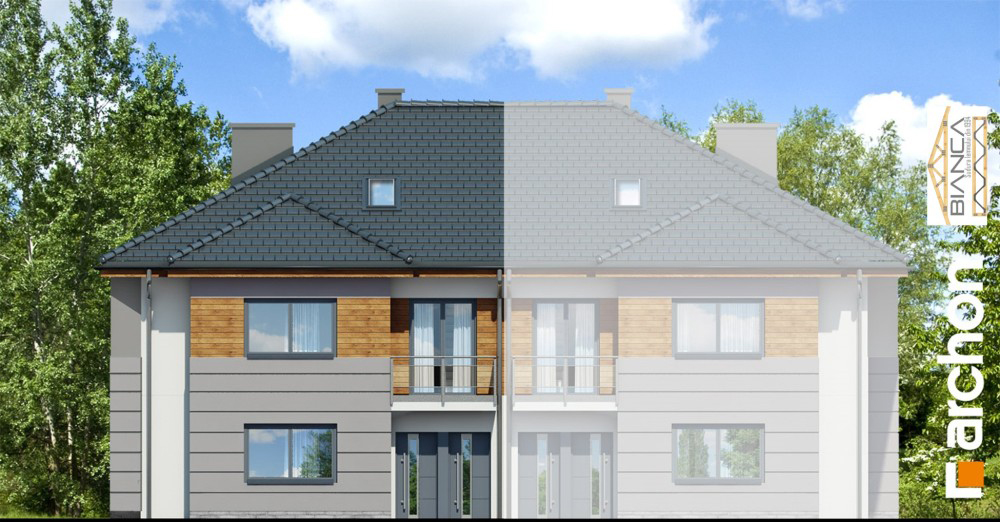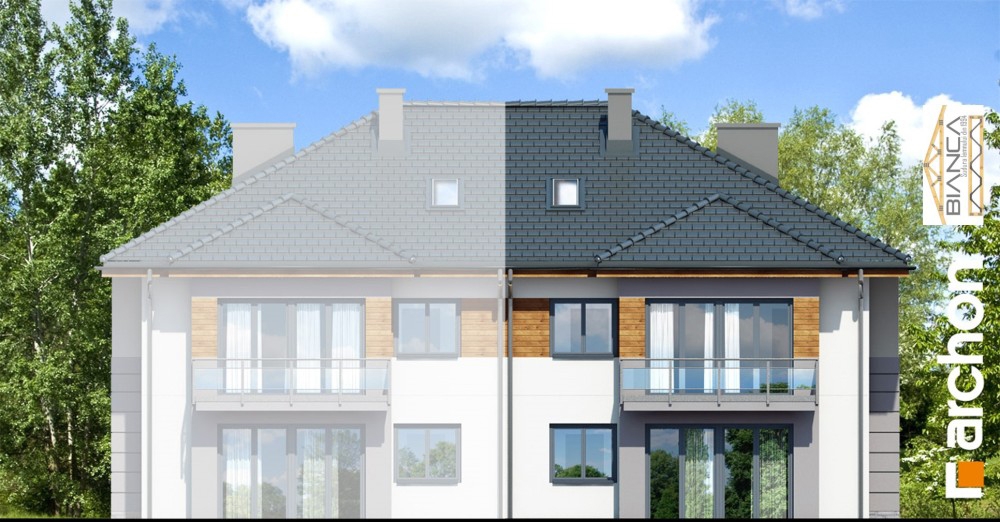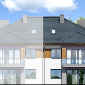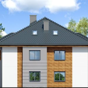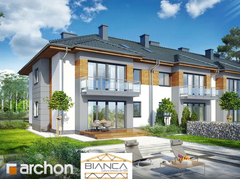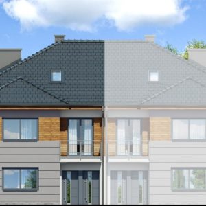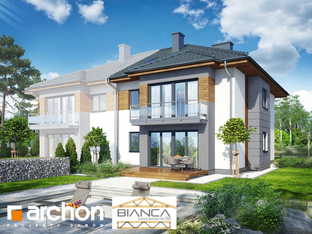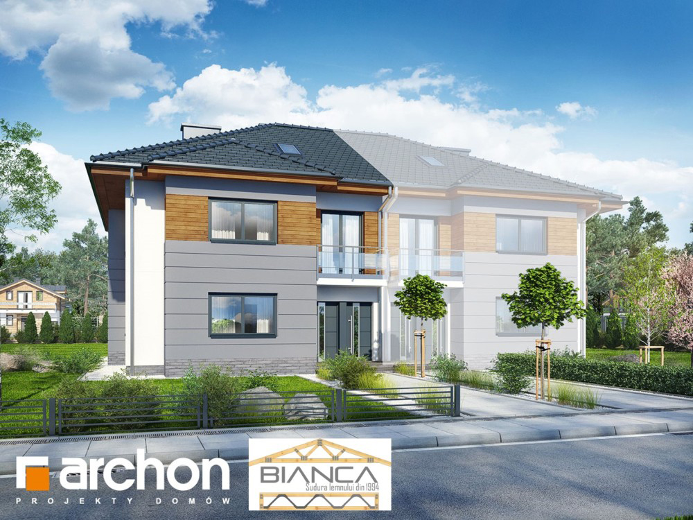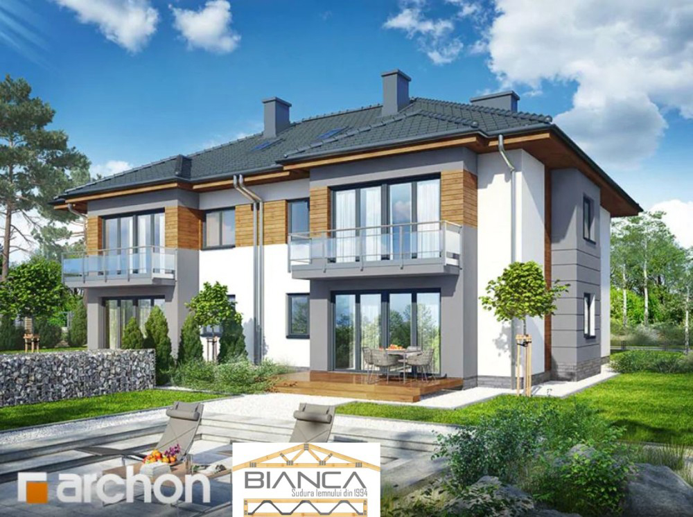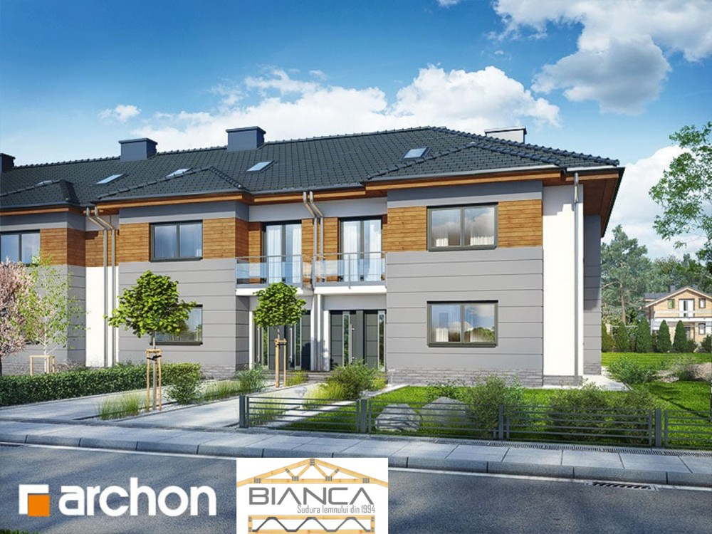 Compusa din doua locuinte, aceasta casa este destinata unor familii numeroase care isi doresc o doza mare de confort. Poate fi construita atat in zone rezidentiale din oras, cat si la tara si se remarca prin cateva elemente gandite foarte bine de arhitect: