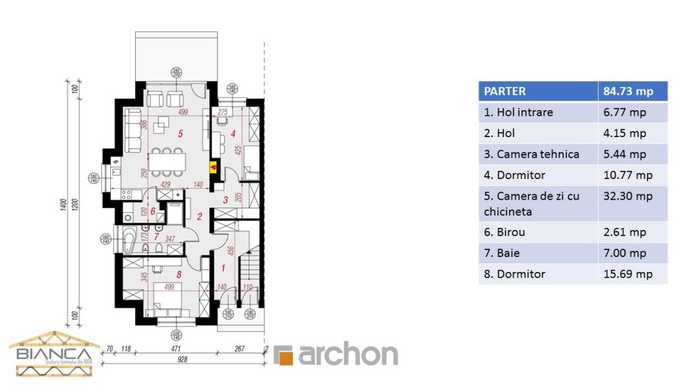 Casa Bianca 175 P + 1 + M este alegerea perfecta pentru toti cei care isi doresc o doza generoasa de confort obtinut dintr-un consum bine optimizat de energie si de spatiu.