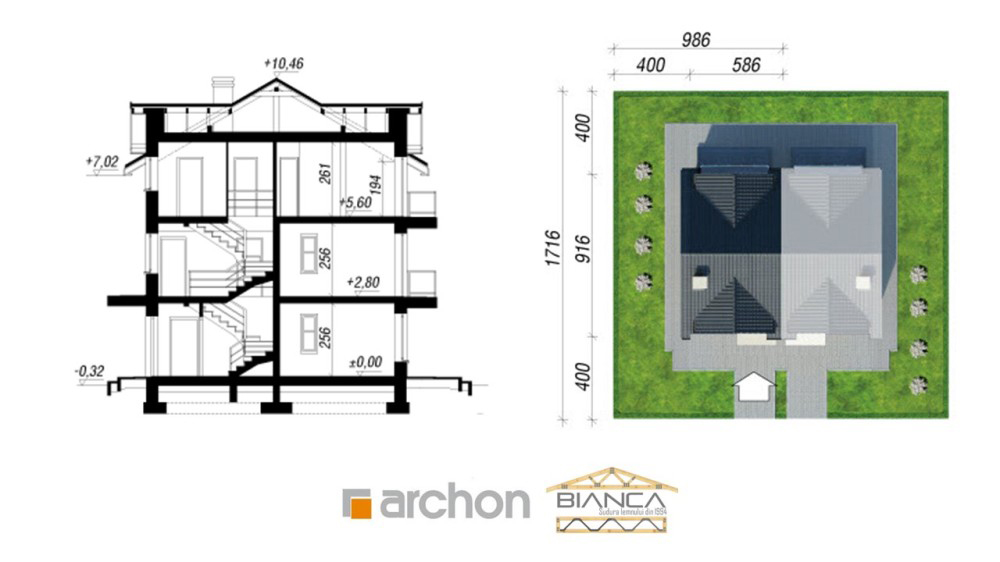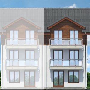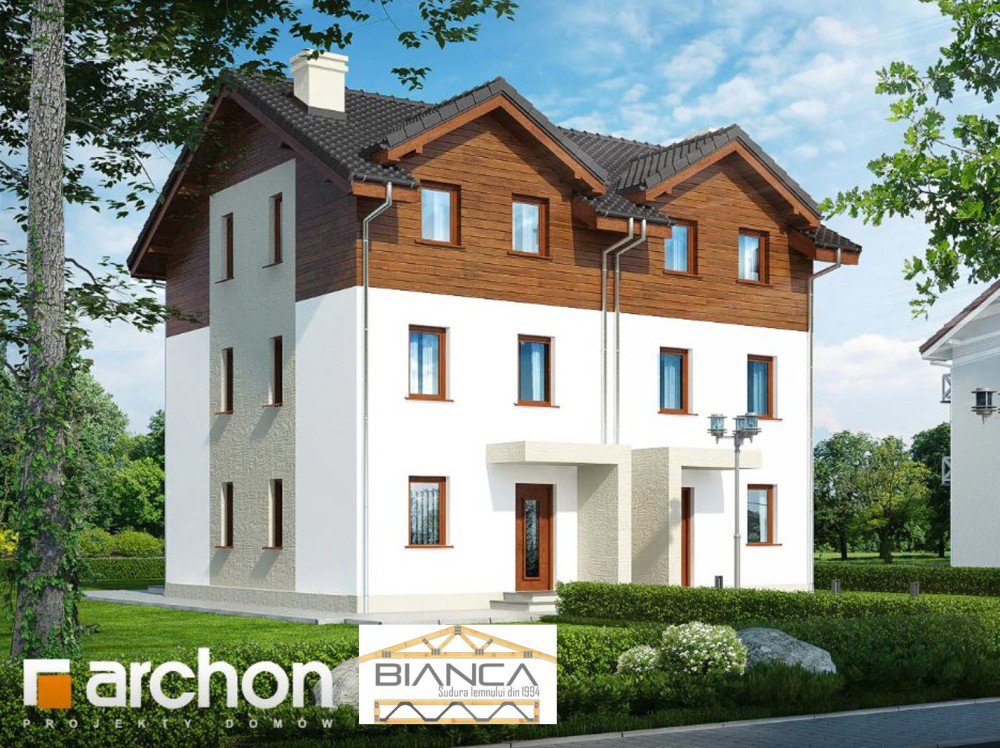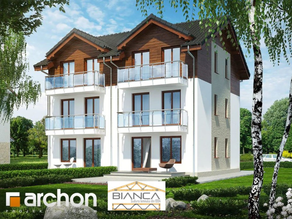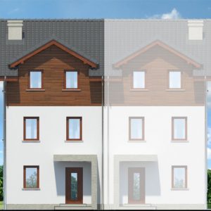 Proiectul este gandit pentru doua familii, motiv pentru care casa este lipita de o alta unitate locativa identica, insa acest lucru nu reprezinta niciun neajuns, atata vreme cat fiecare locuinta are intrare individuala si beneficiaza de o izolare fonica foarte buna.