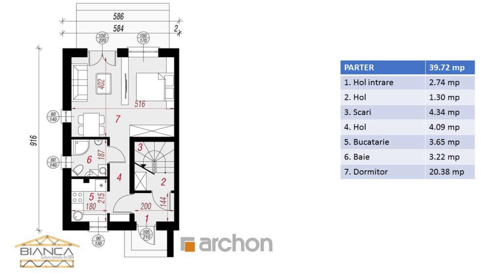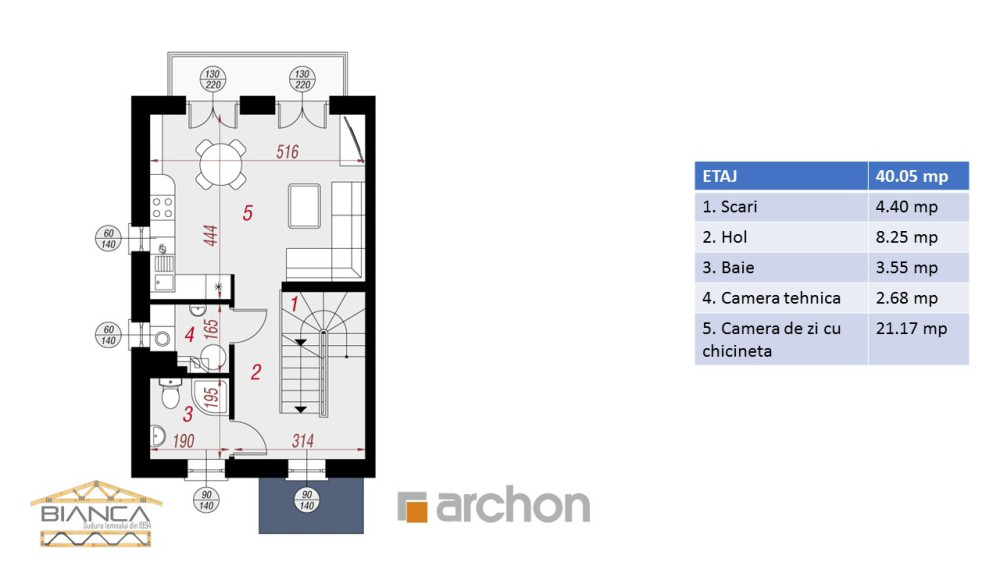 Pentru cei care isi doresc o locuinta incapatoare, insa nu au la dispozitie un teren foarte mare pentru constructie, aceasta casa cu o suprafata desfasurata de 113 metri patrati, insa cu o amprenta la sol de doar 39.72 metri patrati este perfecta.