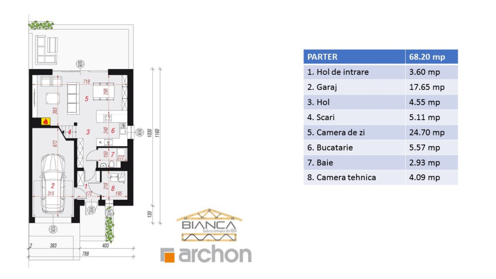 - Este compartimentata in asa fel incat sa ofere un confort sporit. Vei simti doza mare de confort inca din momentul in care ajungi acasa si iti parchezi masina in garajul de la parter. Din garaj ai acces direct in holul casei, dupa care intri intr-un living open space, foarte luminos. Parterul dispune inclusiv de o baie si de o camera tehnica, in timp ce etajul este gandit doar pentru odihna, cu 4 dormitoare mari si o baie .