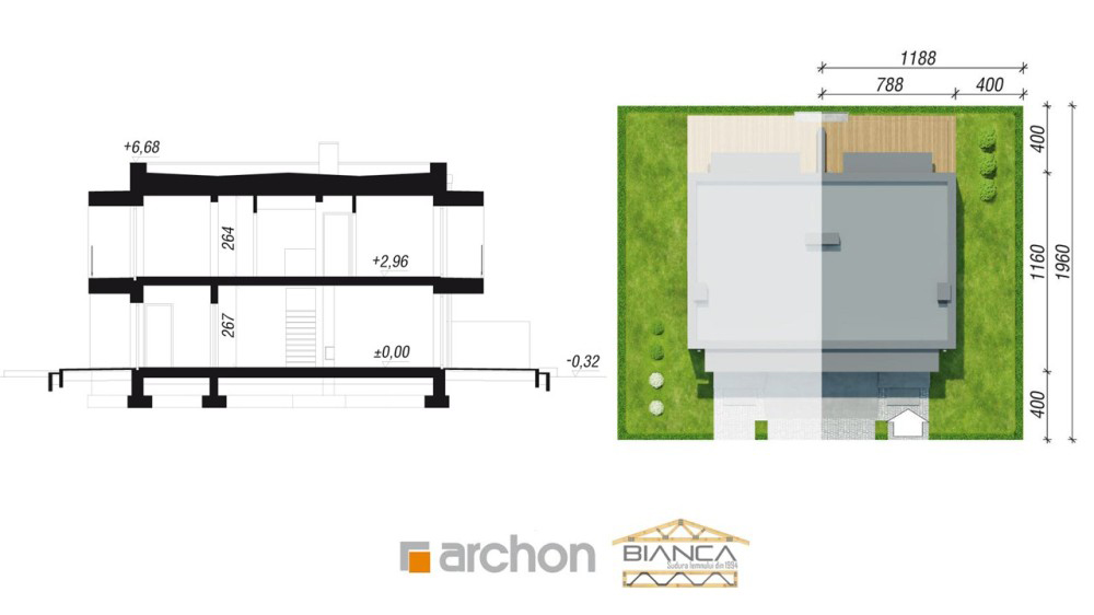 Aspectul futurist al acestei case va convinge rapid orice familie moderna, care nu vrea sa faca rabat la calitate, isi doreste spatiu si in acelasi timp vrea sa economiseasca teren si bani.