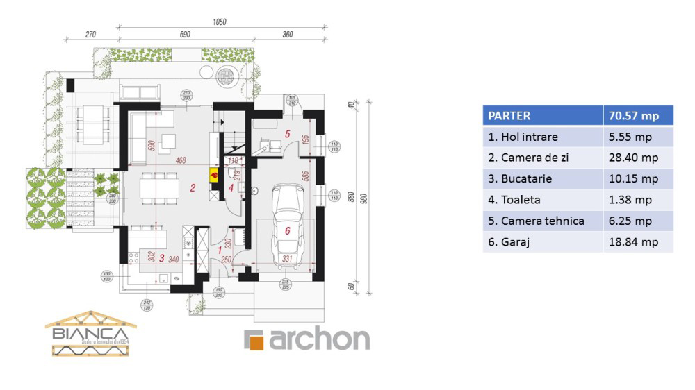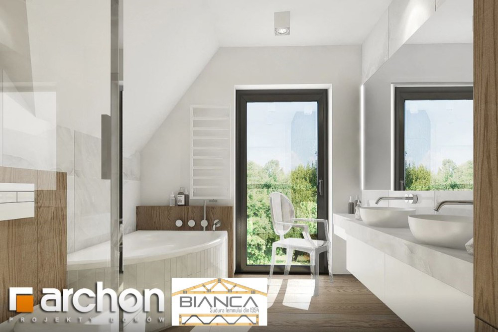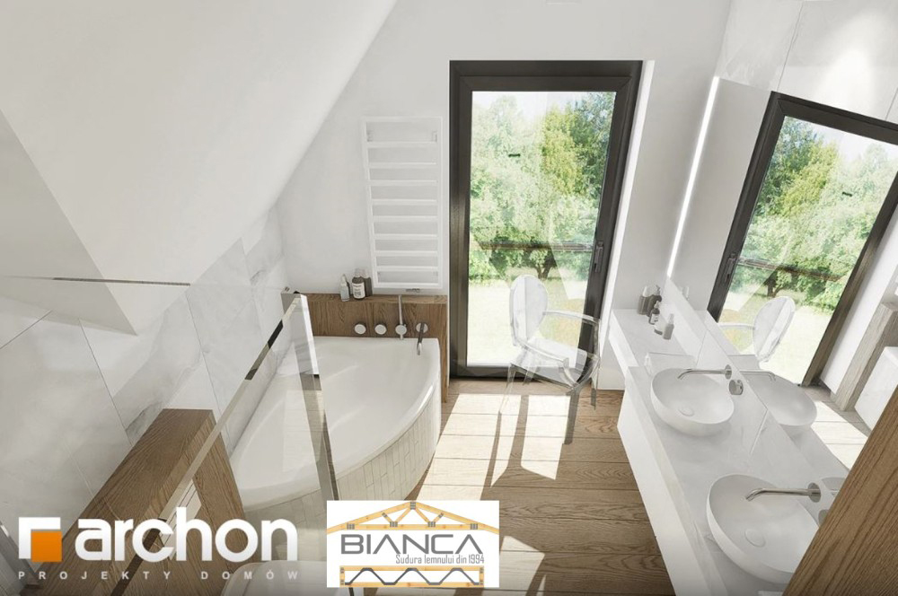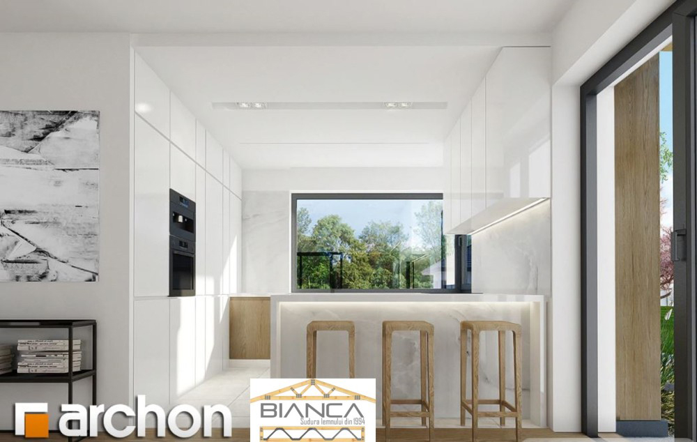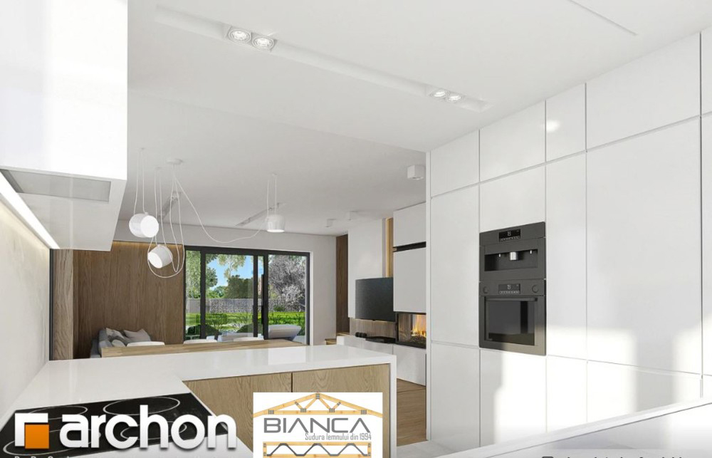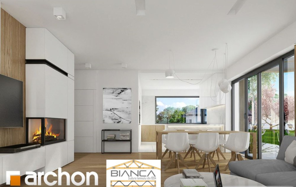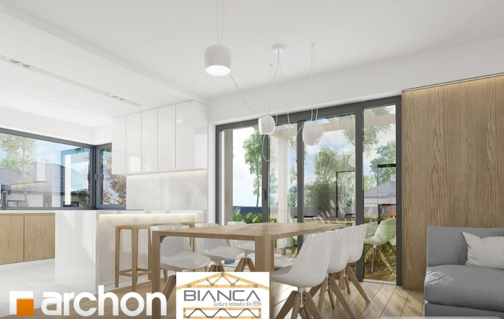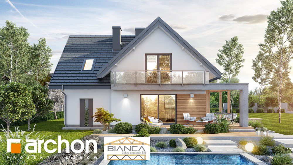 - Este spatioasa. La parter ai o camera de zi de 28 de metri patrati care pare mult mai mare gratie bucatariei open space. Tot la parter te poti bucura de cateva spatii de depozitare si de un garaj. La mansarda s-a mizat pe spatii pentru dormit. Cele 3 dormitoare ofera un spatiu intim si confortabil si sunt deservite de o baie si de un dressing room mare.
