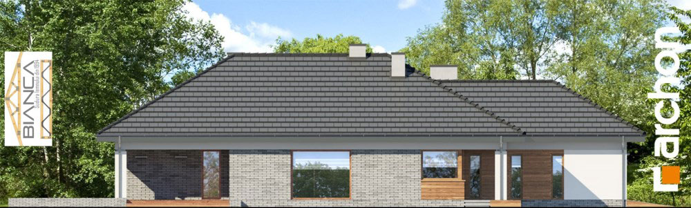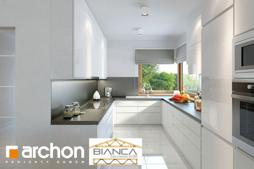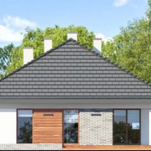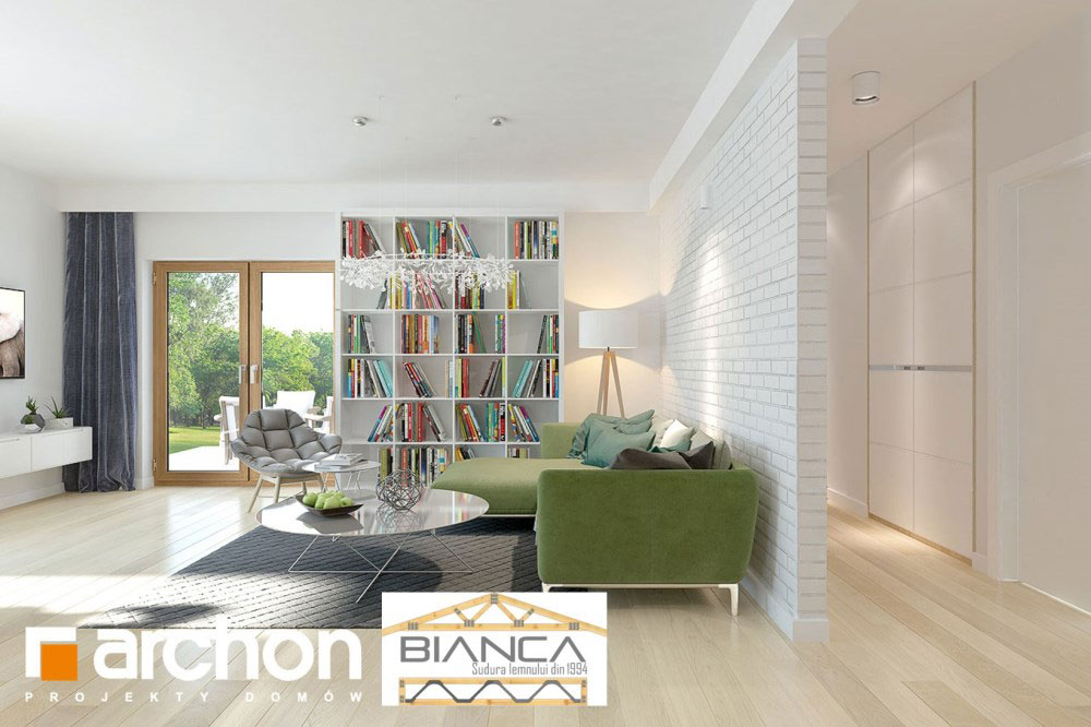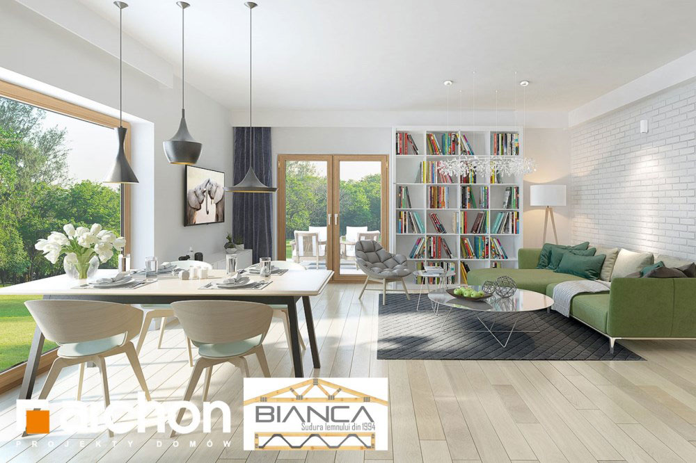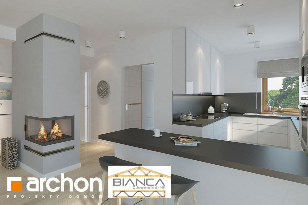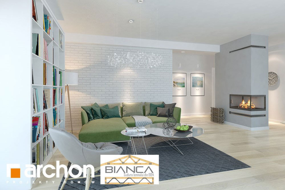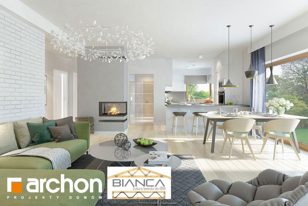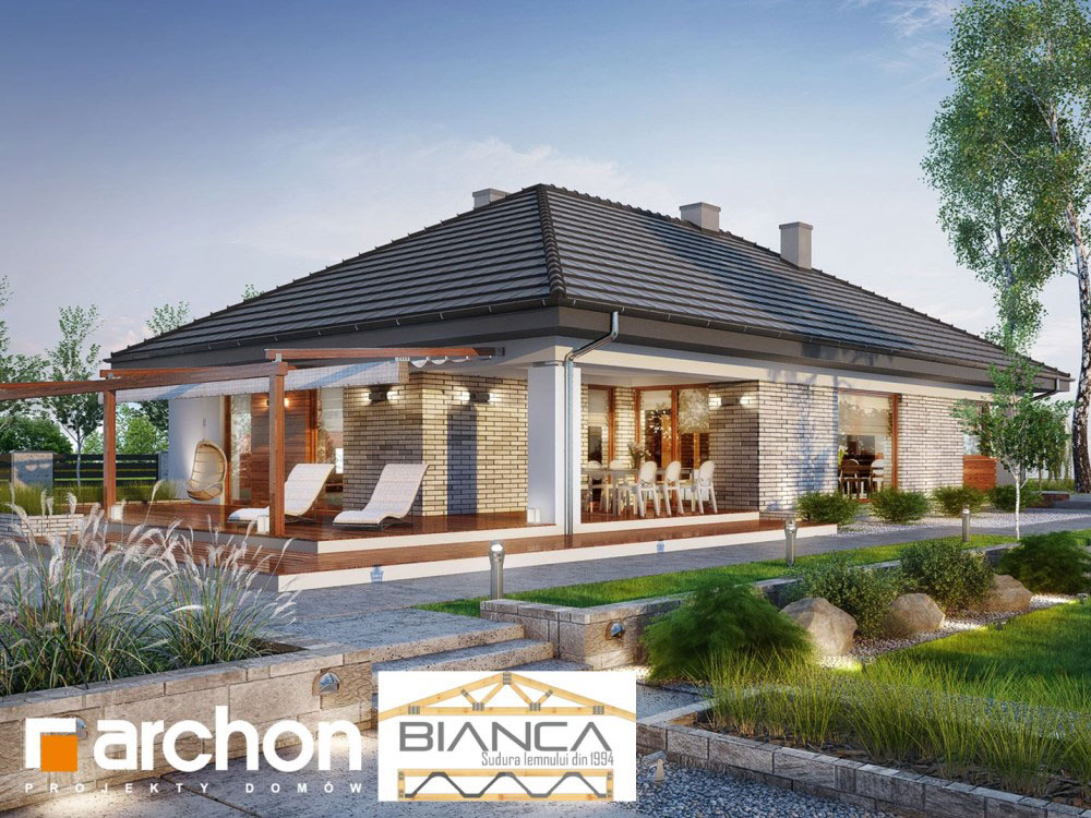 Fara a iesi prea mult in evidenta din exterior, aceasta casa ofera o imagine curata si foarte placute. Desi simpla, reuseste sa atraga prin geamuri mari, finisaje din lemn sau piatra si o structura dinamica si placuta.