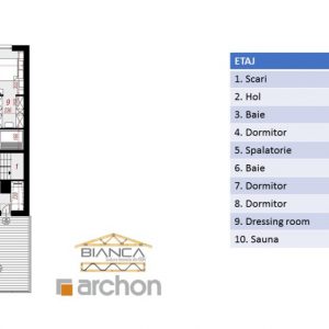 Etajul mizeaza si el pe foarte mult spatiu. In cei 110 mp de la etaj vei descoperi 3 dormitoare, doua bai si un dressing room, precum si cateva camere care te ajuta sa te relaxezi si sa te bucuri de timpul tau: o spalatorie si o sauna.