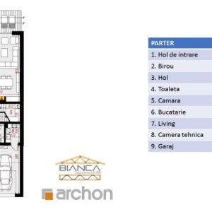 Parterul are 118.97 metri patrati, dintre care aproape 48 sunt ocupati de living si bucatarie, iar 35 de garaj. Aici gasesti toate utilitatile de care ai nevoie, de la baie pana la camara de depozitare si birou. Din living poti iesi intr-o terasa de dimensiuni mai mult decat decente, pe care o poti mari dupa bunul plac.