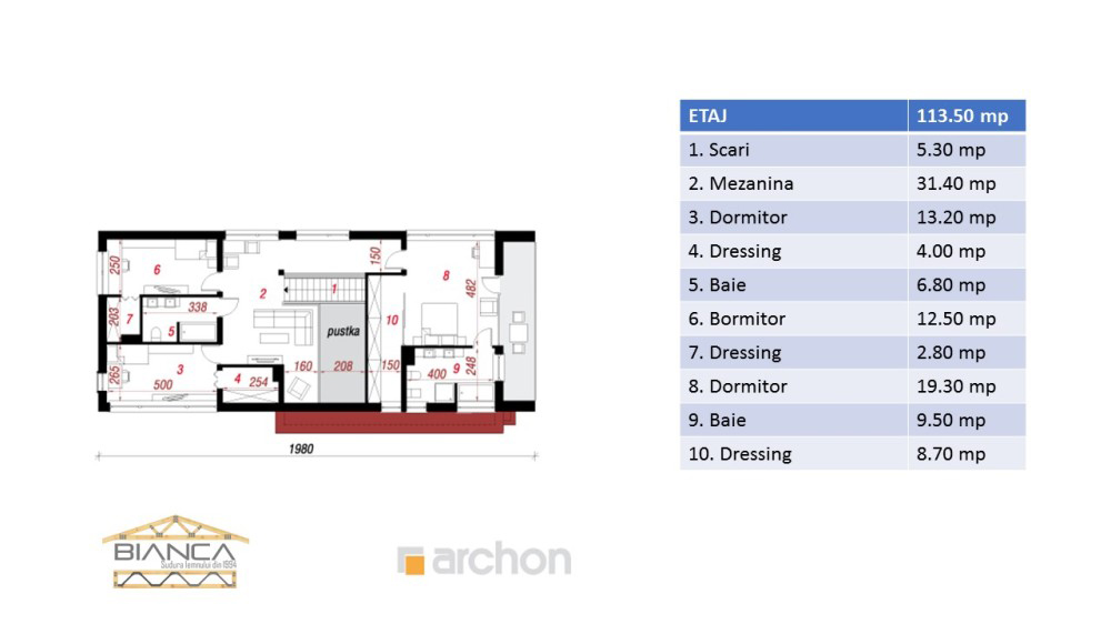 La etaj vei putea descoperi 3 dormitoare mari, fiecare cu dressingul propriu, un balcon si o zona spatioasa de mezanin.